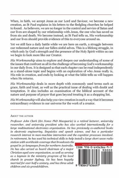 When, in faith, we accept Jesus as our Lord and Saviour, we become a new creation, as St Paul explains in his letters to the fledgling churches he helped to found. As believers, we are no longer in the control and service of Satan and our lives are shaped by our relationship with Jesus, the one who has saved us from sin and death. We become instead, as St Paul tells us, His workmanship and our lives should provide evidence of this to everyone around us. Yet we still face a daily battle while we are here on earth, a struggle between our redeemed nature and our fallen sinful selves. This is a lifelong struggle, in which only by God's strength and the presence of the Holy Spirit within us can we begin to look more like our Creator. His Workmanship aims to explore and deepen our understanding of some of the issues that confront us all in the challenge of becoming God's workmanship in our daily lives. It is designed so that each chapter can be read independently as a stand-alone topic and begins with an exploration of who Jesus really is, His role in creation, and ends by looking at what the bible tells us will happen when He returns. His Workmanship deals in more depth with commonly used terms such as grace, faith and trust, as well as the practical issue of dealing with doubt and temptation. It also includes an examination of the biblical account of the nature and purpose of prayer that goes beyond treating it as a shopping list. His Workmanship will also help you view creation in such a way that it becomes extraordinary evidence in our universe for the work of a creator.