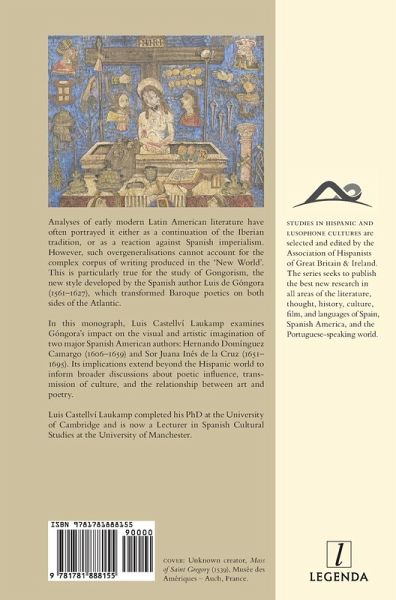 Analyses of early modern Latin American literature have often portrayed it either as a continuation of the Iberian tradition, or as a reaction against Spanish imperialism. However, such overgeneralisations cannot account for the complex corpus of writing produced in the ‘New World’. This is particularly true for the study of Gongorism, the new style developed by the Spanish author Luis de Góngora (1561–1627), which transformed Baroque poetics on both sides of the Atlantic. In this monograph, Luis Castellví Laukamp examines Góngora’s impact on the visual and artistic imagination of two major Spanish American authors: Hernando Domínguez Camargo (1606–1659) and Sor Juana Inés de la Cruz (1651–1695). Its implications extend beyond the Hispanic world to inform broader discussions about poetic influence, transmission of culture, and the relationship between art and poetry. Luis Castellví Laukamp completed his PhD at the University of Cambridge and is now a Lecturer in Spanish Cultural Studies at the University of Manchester.