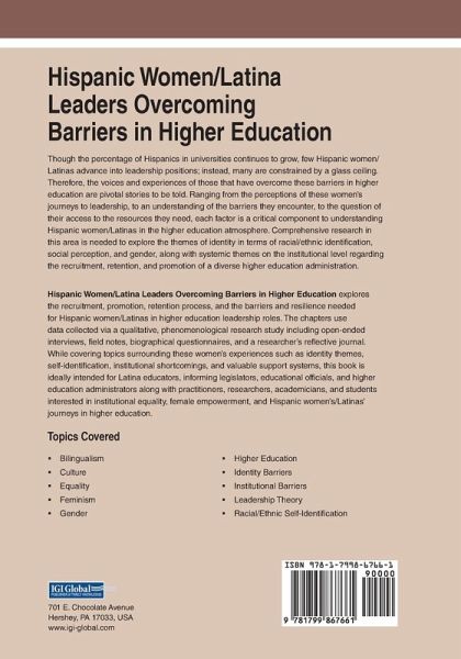 "The purpose of this book is to examine Hispanic women/Latinas' experiences and perceptions about their journey to leadership in higher education, the barriers they encounter, and their access to and acquisition of resources needed for their success"--