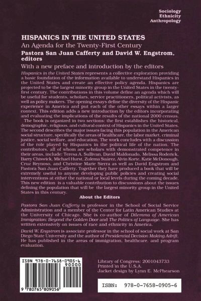 Hispanics in the United States represents a collective exploration providing a basic foundation of the information available to understand Hispanics in the United States and create an effective policy agenda. Hispanics are projected to be the largest minority group in the United States in the twenty-first century. The contributions define an agenda which will be useful for students, scholars, service practitioners, political activists, as well as policy makers. The opening essays define the diversity of the Hispanic experience in America and put each of the other essays within a larger context. This edition adds a new introduction by the editors incorporating and evaluating the implications of the results of the national 2000 census. The book is organized into two sections: the first establishes the historical, demographic, religious, and cultural context of Hispanics in the United States. The second describes the major issues facing this population in the American social structure, specifically the areas of health care, the labor market, criminal justice, social welfare, and education. The work concludes with a discussion of the role played by Hispanics in the political life of the nation. The contributors, all of whom are scholars with demonstrated competence in the areas, include: Teresa A. Sullivan, David Maldonado, Melissa Roderick, Barry Chiswick, Michael Hurst, Zulema Suarez, Alvin Korte, Katie McDonough, Cruz Reynoso, and Christine Marie Sierra, as well as David Engstrom and Pastora San Juan Cafferty. Together they have produced a book which will be extremely useful to anyone developing public policies and creating social interventions at either the national or local levels during the coming decade. This new edition is a valuable contributor to discussions about the issues defining the population that will be the largest minority group in the United States in this century.