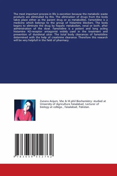 The most important process in life is excretion because the metabolic waste products are eliminated by this. The elimination of drugs from the body takes place either as the parent drug or as metabolites. Famotidine is a medicine which belongs to the group of histamine blockers. The body begins to eliminate the drug by hepatic metabolism, renal or both, after administration of the dose. Famotidine is a potent and long acting histamine H2-receptor antagonist widely used in the treatment and prevention of duodenal ulcer. The total body clearances of famotidine determined with the help of…mehr