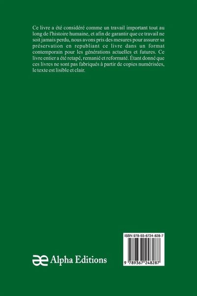 Histoire d'Attila et de ses successeurs (1/2); jusqu'à l'établissement des Hongrois en Europe" est un livre classique, qui a eu une valeur significative tout au long de l'histoire, et pour garantir que sa sagesse intemporelle ne soit jamais perdue, Alpha Editions l'a soigneusement préservé en le republiant dans un format moderne et accessible aux générations présentes et futures. Soigneusement reformaté, retapé , et nouvellement conçue, cette édition offre un texte clair et lisible, sans copies numérisées de l'uvre originale, Alpha Editions se consacre à insuffler une nouvelle vie aux livres anciens et classiques, rendant ces trésors littéraires à nouveau disponibles pour les lecteurs qui chérissent l'histoire. culture et savoir intemporel.