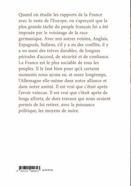 Après des études au lycée Henri IV, à la faculté de Droit de Paris et un passage à La Gazette de France, Jacques Bainville (1879-1936) devient, en 1908, le responsable de la rubrique de politique étrangère au quotidien l'Action française, qu'il détiendra jusqu'à sa mort. En 1935, il est élu à l'Académie française. Journaliste et historien politique français, il était un grand spécialiste des affaires allemandes au début de ce siècle. La justesse de ses analyses fit de sa chronique une des plus appréciées. Elle était lue avec attention même par les milieux républicains. Son Histoire de deux peuples est une analyse des relations franco-germanique à travers les siècles et les régimes qui se sont succédés à la tête de ces deux nations. La France, nation-Etat, tirait sa force, d'après Jacques Bainville, de l'existence de plusieurs Allemagnes. L'unification des ces différentes Allemagnes ne pouvait faire que son malheur, deux grandes nation voisines pouvaient-elle diriger deux puissants Etats ? Pour Bainville, ce qui importe le plus à la clarté des événements : « c'est d'exposer les motifs et les intentions des hommes qui conduisent les grandes affaires ». C'est un peu le « politique d'abord ».