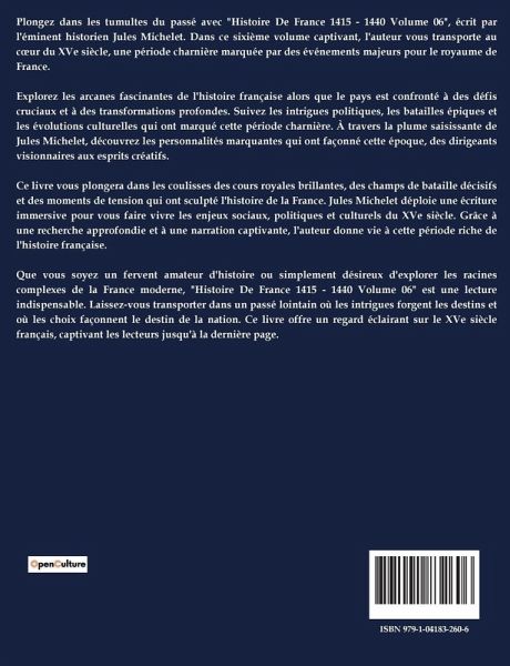 L'extrait de "Histoire de France 1415-1440" de Jules Michelet explore les évolutions politiques et militaires entre la France et l'Angleterre au début du XVe siècle, en se concentrant sur la période précédant et incluant la bataille d'Azincourt. Michelet décrit comment l'Angleterre, sous le règne d'Henri V, a su tirer parti de l'union entre l'État et l'Église pour modifier sa position politique et militaire. En contraste, la France était affaiblie par des divisions internes entre l'Église et l'État, ainsi qu'au sein de ces institutions elles-mêmes. L'auteur souligne l'importance de l'alliance entre la royauté anglaise et l'Église établie, qui a permis à Henri V de mener une campagne militaire progressive en France. La prise d'Harfleur et la marche vers Calais sont décrites comme des mouvements stratégiques audacieux, bien que risqués, qui ont finalement conduit à la victoire anglaise à Azincourt. Michelet met en lumière les erreurs tactiques des Français, révélant leur incapacité à mobiliser efficacement leurs forces et à tirer parti de leur supériorité numérique. L'extrait se termine par une description détaillée de la bataille d'Azincourt, où la discipline et la stratégie anglaises ont triomphé des forces françaises désorganisées.