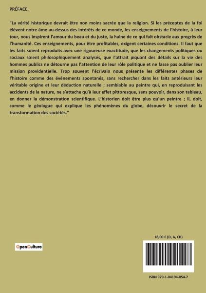 L'ouvrage "Histoire de Jules César", coécrit par Dominique Fournier et l'Empereur Napoléon III, est une étude exhaustive de la vie de Jules César et du contexte historique de la Rome antique. Divisé en plusieurs livres, le texte commence par une analyse des temps de Rome antérieurs à César, décrivant l'évolution des institutions romaines sous les rois et le passage vers la République consulaire. Il aborde ensuite la conquête de l'Italie et la prospérité du bassin méditerranéen avant les guerres puniques. Les auteurs détaillent les guerres puniques, de Macédoine et d'Asie, ainsi que les réformes et conflits internes sous les Gracques, Marius et Sylla. Le deuxième livre se concentre sur la vie de Jules César, de ses premières années à ses campagnes militaires, en passant par ses rôles politiques à Rome. Les livres suivants décrivent en détail la guerre des Gaules, s'appuyant sur les commentaires de César lui-même, et les événements politiques à Rome de 696 à 705. L'ouvrage se termine par des appendices fournissant des concordances de dates, des notes sur les monnaies antiques et des informations sur les lieutenants de César. Ce texte est une ressource précieuse pour comprendre l'impact de César sur l'histoire romaine et les changements politiques de son époque.