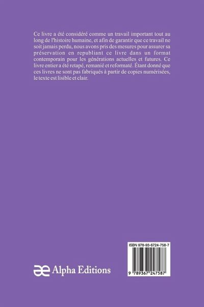 Histoire de la Littérature Anglaise (Volume 3 de 5)" est un livre classique, qui a eu une valeur significative tout au long de l'histoire, et pour garantir que sa sagesse intemporelle ne soit jamais perdue, Alpha Editions l'a soigneusement préservé en le republiant dans un format moderne et accessible aux générations présentes et futures. Soigneusement reformaté, retapé , et nouvellement conçue, cette édition offre un texte clair et lisible, sans copies numérisées de l'uvre originale, Alpha Editions se consacre à insuffler une nouvelle vie aux livres anciens et classiques, rendant ces trésors littéraires à nouveau disponibles pour les lecteurs qui chérissent l'histoire. culture et savoir intemporel.