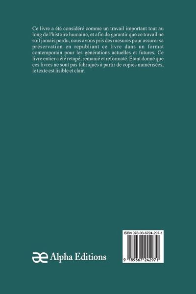 Histoire de la Littérature Anglaise (Volume 5 de 5)" est un livre classique, qui a eu une valeur significative tout au long de l'histoire, et pour garantir que sa sagesse intemporelle ne soit jamais perdue, Alpha Editions l'a soigneusement préservé en le republiant dans un format moderne et accessible aux générations présentes et futures. Soigneusement reformaté, retapé , et nouvellement conçue, cette édition offre un texte clair et lisible, sans copies numérisées de l'uvre originale, Alpha Editions se consacre à insuffler une nouvelle vie aux livres anciens et classiques, rendant ces trésors littéraires à nouveau disponibles pour les lecteurs qui chérissent l'histoire. culture et savoir intemporel.