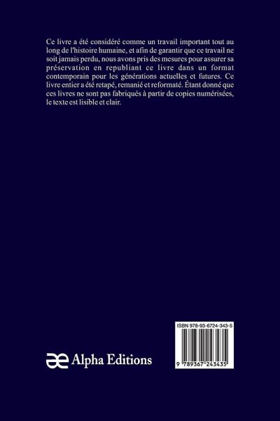 Histoire de la Révolution française, Tome 05" est un livre classique, qui a eu une valeur significative tout au long de l'histoire, et pour garantir que sa sagesse intemporelle ne soit jamais perdue, Alpha Editions l'a soigneusement préservé en le republiant dans un format moderne et accessible aux générations présentes et futures. Soigneusement reformaté, retapé , et nouvellement conçue, cette édition offre un texte clair et lisible, sans copies numérisées de l'uvre originale, Alpha Editions se consacre à insuffler une nouvelle vie aux livres anciens et classiques, rendant ces trésors littéraires à nouveau disponibles pour les lecteurs qui chérissent l'histoire. culture et savoir intemporel.