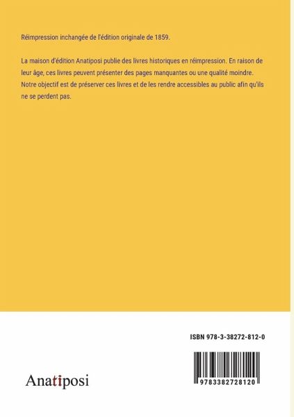 Réimpression inchangée de l'édition originale de 1859. La maison d'édition Anatiposi publie des livres historiques en réimpression. En raison de leur âge, ces livres peuvent présenter des pages manquantes ou une qualité moindre. Notre objectif est de préserver ces livres et de les rendre accessibles au public afin qu'ils ne se perdent pas.