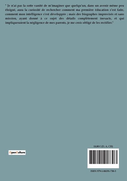 Dans "Histoire de ma jeunesse", François Arago retrace les premières années de sa vie, mettant en lumière les influences et les événements qui ont façonné son parcours intellectuel. Né en 1786 à Estagel, dans le Roussillon, Arago grandit dans une famille modeste mais cultivée. Il commence son éducation à l'école primaire de son village natal, où il apprend à lire, écrire et reçoit des leçons de musique. Malgré les troubles du changement politique en France, il ne participe pas aux excès de cette période, contrairement à certaines affirmations erronées. Son intérêt pour les sciences se manifeste véritablement lors de sa rencontre avec un jeune officier du génie, M. Cressac, qui lui parle de l'École polytechnique. Cette rencontre change la direction de ses études, le poussant à se tourner vers les mathématiques et les sciences physiques. Arago se prépare intensément pour l'examen d'entrée à l'École polytechnique, qu'il réussit brillamment malgré les préjugés initiaux de l'examinateur. À l'École, il se distingue par sa passion pour l'analyse mathématique, bien qu'il doive encore acquérir des connaissances en physique et chimie. Ses interactions avec des figures influentes comme Hachette et Poisson enrichissent son parcours académique. Arago évoque également les tensions politiques de l'époque, telles que la pression exercée sur les élèves pour soutenir le gouvernement, ce qui témoigne de l'atmosphère tumultueuse dans laquelle il évolue. Ce récit offre un aperçu précieux des débuts d'un des plus grands savants du XIXe siècle, soulignant l'importance de l'éducation, des mentors et des circonstances historiques dans le développement d'une carrière scientifique.