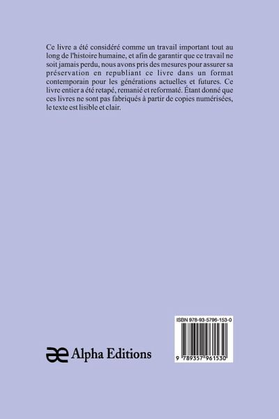 Histoire de Marie-Antoinette, Volume 1, un livre classique, a été considéré comme important tout au long de l'histoire de l'humanité, et pour que cet ouvrage ne soit jamais oublié, chez Alpha Editions, nous avons fait des efforts pour sa préservation en rééditant ce livre dans un format moderne pour les générations présentes et futures. Tout ce livre a été reformaté, retapé et conçu. Ces livres ne sont pas constitués de copies numérisées de leur ¿uvre originale et le texte est donc clair et lisible.