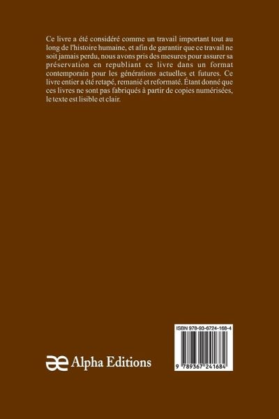 Histoire du Consulat et de l'Empire, (Vol. 02); faisant suite à l'Histoire de la Révolution Française" est un livre classique, qui a eu une valeur significative tout au long de l'histoire, et pour garantir que sa sagesse intemporelle ne soit jamais perdue, Alpha Editions l'a soigneusement préservé en le republiant dans un format moderne et accessible aux générations présentes et futures. Soigneusement reformaté, retapé , et nouvellement conçue, cette édition offre un texte clair et lisible, sans copies numérisées de l'uvre originale, Alpha Editions se consacre à insuffler une nouvelle vie aux livres anciens et classiques, rendant ces trésors littéraires à nouveau disponibles pour les lecteurs qui chérissent l'histoire. culture et savoir intemporel.