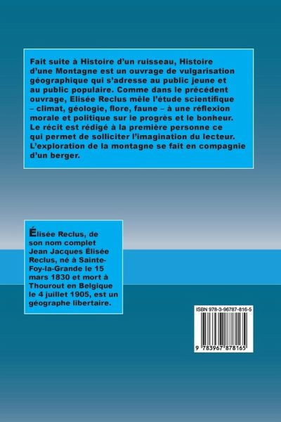 Fait suite à Histoire d'un ruisseau, Histoire d'une Montagne est un ouvrage de vulgarisation géographique qui s'adresse au public jeune et au public populaire. Comme dans le précédent ouvrage, Elisée Reclus mêle l'étude scientifique - climat, géologie, flore, faune - à une réflexion morale et politique sur le progrès et le bonheur. Le récit est rédigé à la première personne ce qui permet de solliciter l'imagination du lecteur. L'exploration de la montagne se fait en compagnie d'un berger.