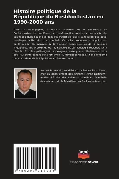 Dans la monographie, à travers l'exemple de la République du Bachkortostan, les problèmes de transformation politique et socioculturelle des républiques nationales de la Fédération de Russie dans la période post-soviétique de l'histoire sont examinés. Outre les processus ethnopolitiques de la région, les aspects de la situation linguistique et de la politique linguistique, les problèmes du fédéralisme et de l'idéologie régionale sont révélés. Pour les politologues, sociologues, enseignants, étudiants et tous ceux qui s'intéressent aux problèmes du développement politique moderne de la Russie et de la République du Bachkortostan.