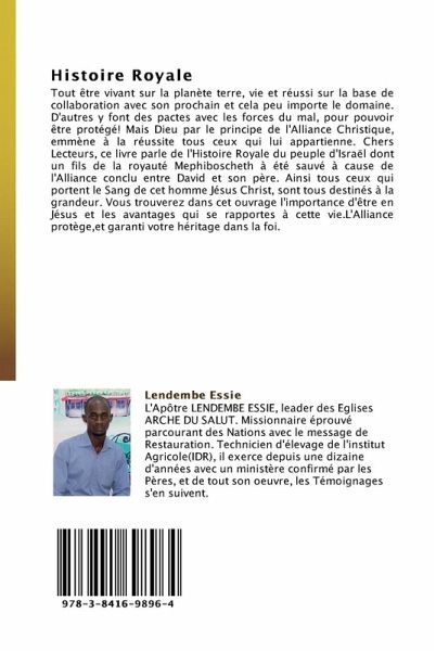 Tout être vivant sur la planète terre, vie et réussi sur la base de collaboration avec son prochain et cela peu importe le domaine. D'autres y font des pactes avec les forces du mal, pour pouvoir être protégé! Mais Dieu par le principe de l'Alliance Christique, emmène à la réussite tous ceux qui lui appartienne. Chers Lecteurs, ce livre parle de l'Histoire Royale du peuple d'Israël dont un fils de la royauté Mephiboscheth à été sauvé à cause de l'Alliance conclu entre David et son père. Ainsi tous ceux qui portent le Sang de cet homme Jésus Christ, sont tous destinés à la grandeur. Vous trouverez dans cet ouvrage l'importance d'être en Jésus et les avantages qui se rapportes à cette vie.L'Alliance protège,et garanti votre héritage dans la foi.
