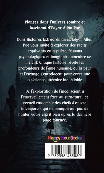 Plongez dans l'univers sombre et fascinant d'Edgar Allan Poe Dans Histoires Extraordinaires, Edgar Allan Poe vous invite à explorer des récits captivants où mystère, frissons psychologiques et imaginaire macabre se mêlent. Chaque histoire révèle les profondeurs de l'âme humaine, où la peur et l'étrange s'entrelacent pour créer une expérience littéraire inoubliable. De l'exploration de l'inconscient à l'émerveillement face au surnaturel, ce recueil rassemble des chefs-d'¿uvre intemporels qui ne manqueront pas de hanter votre esprit bien après la dernière page tournée.