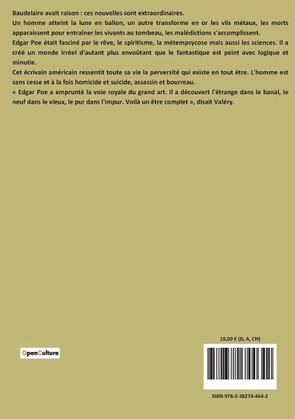 Baudelaire avait raison : ces nouvelles sont extraordinaires. Un homme atteint la lune en ballon, un autre transforme en or les vils métaux, les morts apparaissent pour entraîner les vivants au tombeau, les malédictions s'accomplissent. Edgar Poe était fasciné par le rêve, le spiritisme, la métempsycose mais aussi les sciences. Il a créé un monde irréel d'autant plus envoûtant que le fantastique est peint avec logique et minutie. Cet écrivain américain ressentit toute sa vie la perversité qui existe en tout être. L'homme est sans cesse et à la fois homicide et suicide, assassin et bourreau. « Edgar Poe a emprunté la voie royale du grand art. Il a découvert l'étrange dans le banal, le neuf dans le vieux, le pur dans l'impur. Voilà un être complet », disait Valéry.