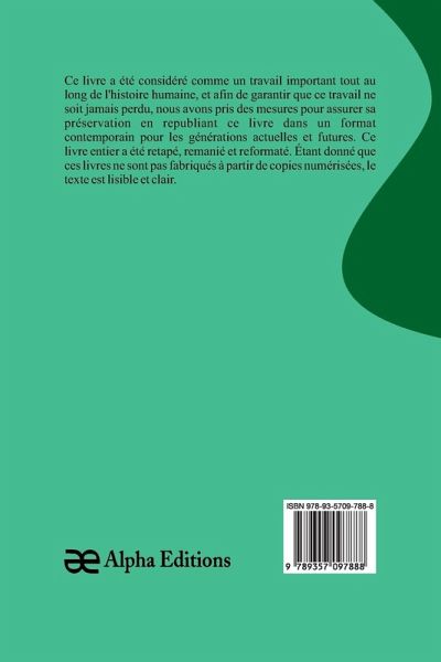 Histoires grotesques et sérieuses, a été considérée comme importante tout au long de l'histoire de l'humanité. Dans un effort pour s'assurer que ce travail ne soit jamais perdu, nous avons pris des mesures pour assurer sa préservation en republiant ce livre dans un format moderne pour les générations actuelles et futures. Ce livre complet a été retapé, remanié et reformaté. Comme ces livres ne sont pas des scans des publications originales des auteurs, le texte est lisible et clair.