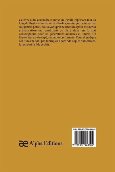 Histoires incroyables, Tome I, un livre classique, a été considéré comme important tout au long de l'histoire de l'humanité, et pour que cet ouvrage ne soit jamais oublié, chez Alpha Editions, nous avons fait des efforts pour sa préservation en rééditant ce livre dans un format moderne pour les générations présentes et futures. Tout ce livre a été reformaté, retapé et conçu. Ces livres ne sont pas constitués de copies numérisées de leur ¿uvre originale et le texte est donc clair et lisible.