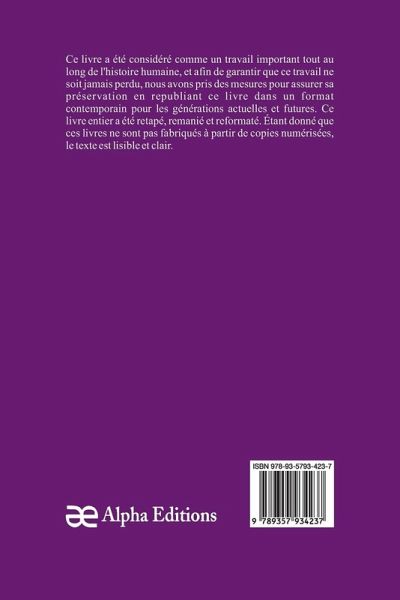 Histoires magiques, est un livre classique et rare, qui a été considéré comme important tout au long de l'histoire de l'humanité, et pour que cet ouvrage ne soit jamais oublié, chez Alpha Editions, nous avons fait des efforts pour sa préservation en rééditant ce livre dans un format moderne pour les générations présentes et futures. . Tout ce livre a été reformaté, retapé et repensé. Ces livres ne sont pas constitués de copies numérisées de leur ¿uvre originale et leur texte est donc clair et lisible. Ce livre remarquable s'inscrit dans les genres de Language and Literatures, Romance literatures…mehr