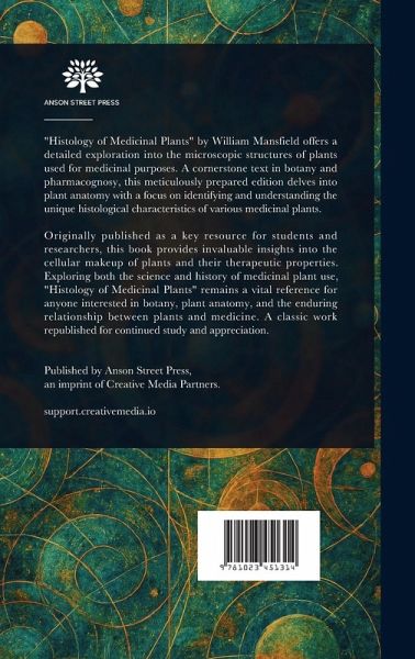 "Histology of Medicinal Plants" by William Mansfield offers a detailed exploration into the microscopic structures of plants used for medicinal purposes. A cornerstone text in botany and pharmacognosy, this meticulously prepared edition delves into plant anatomy with a focus on identifying and understanding the unique histological characteristics of various medicinal plants. Originally published as a key resource for students and researchers, this book provides invaluable insights into the cellular makeup of plants and their therapeutic properties. Exploring both the science and history of medicinal plant use, "Histology of Medicinal Plants" remains a vital reference for anyone interested in botany, plant anatomy, and the enduring relationship between plants and medicine. A classic work republished for continued study and appreciation. This work has been selected by scholars as being culturally important, and is part of the knowledge base of civilization as we know it. This work is in the public domain in the United States of America, and possibly other nations. Within the United States, you may freely copy and distribute this work, as no entity (individual or corporate) has a copyright on the body of the work. Scholars believe, and we concur, that this work is important enough to be preserved, reproduced, and made generally available to the public. We appreciate your support of the preservation process, and thank you for being an important part of keeping this knowledge alive and relevant.