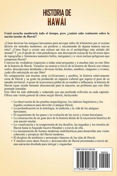Usted escucha nombrarla todo el tiempo, pero ¿cuánto sabe realmente sobre la nación insular de Hawái? ¿Cómo hicieron los antiguos hawaianos para navegar miles de kilómetros por el océano abierto sin métodos modernos, sin perderse y encontrando de alguna manera nuevas islas? ¿Cómo llegó a existir una cultura tan rica en el archipiélago más aislado del mundo? Y ¿es el apodo de isla paradisíaca una descripción exacta de los diversos tipos de topografías y fenómenos naturales bellos, intrigantes y a veces incluso peligrosos que componen Hawái? Conozca las verdaderas respuestas a todas estas preguntas y a muchas más en este libro de la historia de Hawái. Visualice su camino a través de la historia de Hawái con relatos orales, descripciones detalladas y diversas fechas, hechos, nombres, imágenes y eventos, ¡todo ello entretejido en este libro! En comparación con muchas otras civilizaciones y pueblos, la historia relativamente corta de Hawái y su gente ha producido un impacto cultural que supera el peso de su tamaño territorial. A pesar de la presencia global de su nombre e influencia, la historia de Hawái sigue siendo bastante desconocida para la mayoría, un problema que este libro pretende remediar. Este libro ha sido elaborado y redactado con una profunda reflexión en cada capítulo. Ofrece una visión general de cómo surgió Hawái, incluyendo:La observación de las pruebas arqueológicas, los indicios lingüísticos y los legados oceánicos para desvelar el antiguo Hawái. La profundización en la mitología, la tradición y la vida de los antiguos hawaianos. El seguimiento de los pasos y la evolución de los reyes y reinas hawaianos. La construcción de un gran arco de la historia detrás de la trayectoria histórica de esta nación insular. La visualización y la comprensión de los desafíos, las tragedias y los triunfos de Hawái hasta la Segunda Guerra Mundial y a través de ella. La incorporación de fuentes modernas multifacéticas para desarrollar una visión coherente y perspicaz del Hawái moderno. El desglose de artefactos y personajes famosos de las islas de Hawái. Y muchos otros datos frescos y desconocidos de Hawái presentados a través de una narración diseñada para intrigar y enganchar. ¡Adquiera este libro ahora para saber más sobre la historia de Hawái!