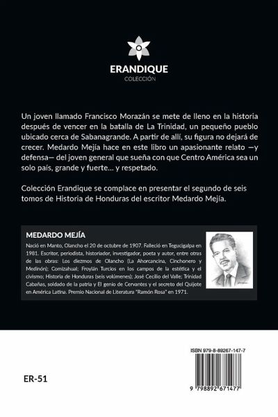 Un joven llamado Francisco Morazán se mete de lleno en la historia después de vencer en la batalla de La Trinidad, un pequeño pueblo ubicado cerca de Sabanagrande. A partir de allí, su figura no dejará de crecer. Medardo Mejía hace en este libro un apasionante relato -y defensa- del joven general que sueña con que Centro América sea un solo país, grande y fuerte... y respetado. Colección Erandique se complace en presentar el segundo de seis tomos de Historia de Honduras del escritor Medardo Mejía.