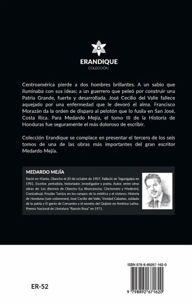 Centroamérica pierde a dos hombres brillantes. A un sabio que iluminaba con sus ideas; a un guerrero que peleó por construir una Patria Grande, fuerte y desarrollada. José Cecilio del Valle fallece aquejado por una enfermedad que le devoró el alma. Francisco Morazán da la orden de disparo al pelotón que lo fusila en San José, Costa Rica. Para Medardo Mejía, el tomo III de la Historia de Honduras fue seguramente el más doloroso de escribir. Colección Erandique se complace en presentar el tercero de los seis tomos de una de las obras más importantes del gran escritor Medardo Mejía.