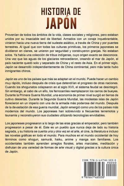 Si quiere descubrir la cautivante historia de Japón, siga leyendo... Japón es uno de los países que más se adaptan en el mundo. Puede hacer un cambio muy rápido, aun después de crisis que detendrían el progreso de otras naciones. Cuando los shogunatos colapsaron en el siglo XVII, el sistema feudal se desintegró. Sin embargo, en menos de un año, los ferrocarriles reemplazaron a los carros de bueyes. Durante la Primera Guerra Mundial, surgió una economía de primer nivel en tierras de cultivo desiertas. Durante la Segunda Guerra Mundial, las modestas islas de Japón florecieron en un imperio con una de las marinas más poderosas del mundo. Después de la devastación de esa guerra mundial, Japón emergió como uno de los países más modernos del mundo. Los japoneses han sobrevivido a frecuentes terremotos y tsunamis y reconstruyeron sus ciudades utilizando tecnologías envidiables. Los japoneses progresaron a lo largo de las eras gracias al emperador, pero también progresaron a pesar de él. Este es un pueblo que nunca deja de lado su historia sagrada, y su historia se cuenta una y otra vez en el arte, el cine, la literatura e incluso en las novelas gráficas de todo el mundo. Términos como shogun, samurái, haiku, anime y manga son familiares para muchos en el mundo occidental de hoy. Los occidentales también aprenden arreglos florales, artes marciales, meditación y disfrutan de una variedad de formas de arte visual y digital gracias a la cultura única de Japón. En Historia de Japón: Una Fascinante Guía de La Historia Japonesa, Incluidos Acontecimientos como La Guerra Genpei, Las Invasiones Mongolas, La Batalla de Tsushima y los Bombardeos Atómicos de Hiroshima y Nagasaki, descubrirá temas como Hijos del Sol Clanes en Guerra Las Dos Cortes Imperiales Japón Edo: Primera Parte-1603 a 1638 Período Edo: Segunda Parte, de 1638 a 1868 La Restauración Meiji Relaciones Extranjeras La Era Taisho La Era Showa Japón en la Segunda Guerra Mundial y sus Secuelas La Era Heisei ¡Y mucho, mucho más! ¡Obtenga este libro ahora para saber más sobre la historia de Japón!