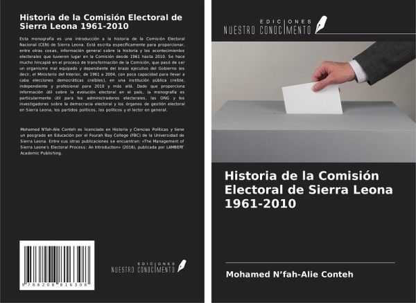 Esta monografía es una introducción a la historia de la Comisión Electoral Nacional (CEN) de Sierra Leona. Está escrita específicamente para proporcionar, entre otras cosas, información general sobre la historia y los acontecimientos electorales que tuvieron lugar en la Comisión desde 1961 hasta 2010. Se hace mucho hincapié en el proceso de transformación de la Comisión, que pasó de ser un organismo mal equipado y dependiente del brazo ejecutivo del Gobierno (es decir, el Ministerio del Interior, de 1961 a 2004, con poca capacidad para llevar a cabo elecciones democráticas creíbles), en una institución pública creíble, independiente y profesional para 2010 y más allá. Dado que proporciona información útil sobre la evolución electoral en el país, la monografía es particularmente útil para los administradores electorales, las ONG y los investigadores sobre la democracia electoral y los órganos de gestión electoral en Sierra Leona, los partidos políticos, los políticos y el lector en general.