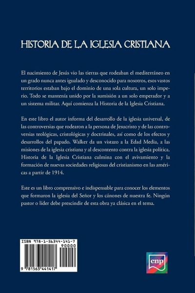 Una obra clasica entre el pueblo evangelico, presentada por un erudito en esta materia, el Dr. Williston Walker, nos entrega la historia comprensiva de la iglesia desde sus mismos comienzos. Representa uno de los textos mas importantes, en esta area, en entidades teologicas. No puede faltar en ninguna biblioteca. 624 paginas.
