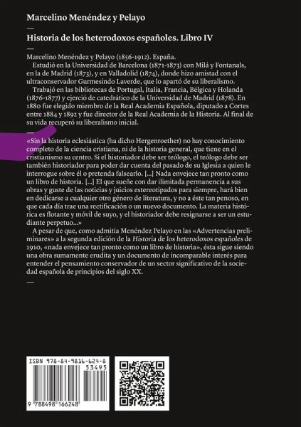 En Historia de los heterodoxos españoles. Libro IV Marcelino Menéndez y Pelayo centro su atención en el erasmismo español (Alfonso de Valdés) y el erasmismo portugués (Damián de Goes), el protestantismo de Juan de Valdés, los luteranos españoles fuera de España (Juan Díaz, Jaime de Enzinas, Francisco de San Román; Miguel Servet, Alfonso Lingurio), los luteranos de Valladolid, Sevilla y Toledo (con el célebre proceso del arzobispo Bartolomé Carranza).