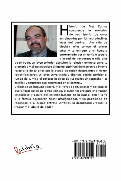 Historia de Tres Raptos comprende la evolución de tres historias de amor entrelazadas por los impredecibles lazos del destino. Una niña de dieciséis años conoce el primer amor y se entrega a un hombre atormentado por un terrible secreto y la sed de venganza; a sólo días de su boda, un joven soñador descubre la relación amorosa entre su prometida y el inescrupuloso dirigente espiritual del momento e intenta rescatarla de su error con la ayuda de recién descubiertos y no tan rectos familiares; un joven universitario y libertino decide cambiar el rumbo de su vida al conocer la chica de sus sueños sin sospechar los escollos y sorpresas que encontrará en el camino... Utilizando un lenguaje sincero, y a través de situaciones y personajes que a veces rayan en lo tragicómico, el autor nos presenta una versión sospechosa y oscura del corazón humano en la cual el amor, la fe y la familia parecieran existir amalgamados, y sin posibilidad de redención, a su propia antítesis universal; la decadencia urbana, la traición y el abuso de poder.