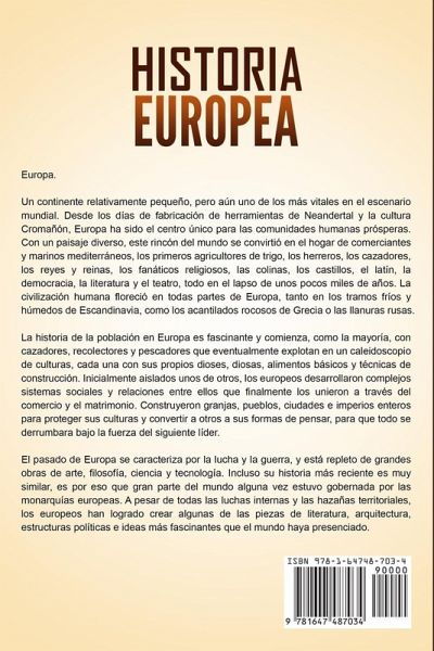 Descubra la cautivadora historia de Europa La historia de Europa es fascinante y comienza, como la mayoría, con cazadores, recolectores y pescadores que eventualmente derivan en un caleidoscopio de culturas, cada una con sus propios dioses, diosas, alimentos básicos y técnicas de construcción. Inicialmente aislados unos de otros, los europeos desarrollaron complejos sistemas sociales y de relaciones entre ellos que finalmente los unieron a través del comercio y el matrimonio. Construyeron granjas, pueblos, ciudades e imperios enteros para proteger sus culturas y convertir a otros a sus formas de pensar, finalmente para que todo se derrumbara bajo la fuerza del próximo líder. El pasado de Europa se caracteriza por la lucha y la guerra, y está repleto de grandes obras de arte, filosofía, ciencia y tecnología. Incluso su historia reciente es muy similar, es por eso que gran parte del mundo alguna vez estuvo gobernada por las monarquías europeas. A pesar de todas las luchas internas y las hazañas territoriales, los europeos han logrado crear algunas de las piezas de literatura, arquitectura, estructuras políticas e ideas más fascinantes que el mundo haya presenciado. En Historia Europea: Una Guía Fascinante de la Historia de Europa, desde los Neandertales hasta el Imperio Romano y el Fin de la Guerra Fría, descubrirá temas comoLa Prehistoria liLa Revolución Neolítica liLa Edad de Bronce Las Primeras Tribus de Europa La Edad de Hierro Gran Bretaña Prehistórica Los Griegos Clásicos El Imperio Romano Los Vikingos La Era Oscura El Sacro Imperio romano El Ascenso de Wessex La Conquista Normanda Marco Polo y la Italia Renacentista Juana de Arco Isabel I de Castilla La Era del Descubrimiento La Reformación La Iluminación La Revolución Francesa La Era Industrial El Imperio Británico de la Reina Victoria La Gran Guerra La Revolución Rusa Segunda Guerra Mundial La Era de la Guerra Fría ¡Y mucho, mucho más! ¡Obtenga ahora este libro para aprender más sobre la historia europea!