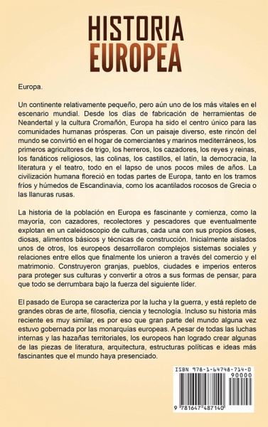 Descubra la cautivadora historia de EuropaLa historia de Europa es fascinante y comienza, como la mayoría, con cazadores, recolectores y pescadores que eventualmente derivan en un caleidoscopio de culturas, cada una con sus propios dioses, diosas, alimentos básicos y técnicas de construcción. Inicialmente aislados unos de otros, los europeos desarrollaron complejos sistemas sociales y de relaciones entre ellos que finalmente los unieron a través del comercio y el matrimonio. Construyeron granjas, pueblos, ciudades e imperios enteros para proteger sus culturas y convertir a otros a sus formas de pensar, finalmente para que todo se derrumbara bajo la fuerza del próximo líder.El pasado de Europa se caracteriza por la lucha y la guerra, y está repleto de grandes obras de arte, filosofía, ciencia y tecnología. Incluso su historia reciente es muy similar, es por eso que gran parte del mundo alguna vez estuvo gobernada por las monarquías europeas. A pesar de todas las luchas internas y las hazañas territoriales, los europeos han logrado crear algunas de las piezas de literatura, arquitectura, estructuras políticas e ideas más fascinantes que el mundo haya presenciado.En Historia Europea: Una Guía Fascinante de la Historia de Europa, desde los Neandertales hasta el Imperio Romano y el Fin de la Guerra Fría, descubrirá temas comoLa Prehistoria liLa Revolución Neolítica liLa Edad de Bronce Las Primeras Tribus de Europa La Edad de Hierro Gran Bretaña Prehistórica Los Griegos Clásicos El Imperio Romano Los Vikingos La Era Oscura El Sacro Imperio romano El Ascenso de Wessex La Conquista Normanda Marco Polo y la Italia Renacentista Juana de Arco Isabel I de Castilla La Era del Descubrimiento La Reformación La Iluminación La Revolución Francesa La Era Industrial El Imperio Británico de la Reina Victoria La Gran Guerra La Revolución Rusa Segunda Guerra Mundial La Era de la Guerra Fría ¡Y mucho, mucho más! ¡Obtenga ahora este libro para aprender más sobre la historia europea!