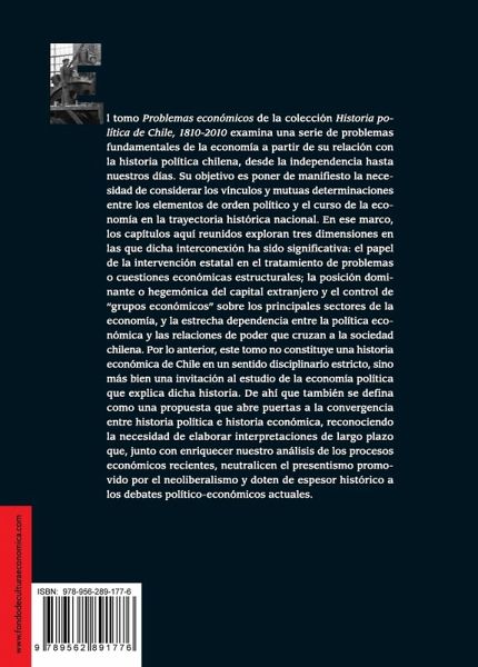 Poner de relieve los estrechos vínculos y las determinaciones mutuas entre el orden político y la economía en la trayectoria histórica de Chile es el objetivo central de este tercer tomo de la "Historia política de Chile, 1810-2010", proyecto realizado por la Universidad Adolfo Ibáñez y editado en Chile por el Fondo de Cultura Económica. Se trata de un magistral ejercicio de economía política en el que temas tales como la evolución del comercio exterior, la inversión extranjera, la industria minera, la industrialización, la evolución del impuesto a los ingresos y la desigualdad en la distribución de los mismos son examinados a la luz de su trayectoria histórica, dejando al descubierto la profunda vinculación entre la economía y la política. Ningún libro de historia económica ni tampoco de historia política puede esclarecer tan claramente como lo hace este excelente libro la forma en que se influyen y determinan recíprocamente estos dos sectores claves de la historia nacional.