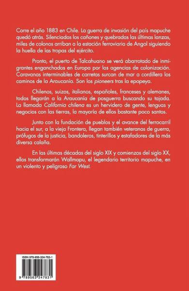Corre el a o 1883 en Chile. La guerra de invasi n del pa s mapuche qued atr s. Silenciados los ca ones y quebradas las ltimas lanzas, miles de colonos arriban a la estaci n ferroviaria de Angol siguiendo la huella de las tropas del ej rcito. Pronto, el puerto de Talcahuano se ver abarrotado de inmigrantes enganchados en Europa por las agencias de colonizaci n. Caravanas interminables de carretas surcan de mar a cordillera los caminos de la Araucan a. Son los pioneers tras la epopeya. Chilenos, suizos, italianos, espa oles, franceses y alemanes, todos llegar n a al territorio mapuche de posguerra buscando su tajada. La llamada California chilena es un hervidero de gente, lenguas y negocios con las tierras, la mayor a de ellos bastante poco santos. Junto con la fundaci n de pueblos y el avance del ferrocarril hacia el sur, a la vieja Frontera, llegan tambi n veteranos de guerra, pr fugos de la justicia, bandoleros, tinterillos y estafadores de la m s diversa cala a. En las ltimas d cadas del siglo XIX y comienzos del siglo XX, ellos transformar n Wallmapu en un violento y peligroso Far West. De todo ello nos cuenta el periodista Pedro Cayuqueo en la continuaci n de su exitosa saga hist rica.