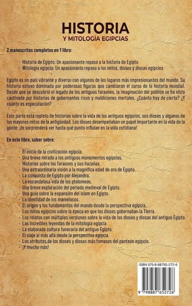2 manuscritos completos en 1 libro: Historia de Egipto: Un apasionante repaso a la historia de Egipto Mitología egipcia: Un apasionante repaso a los mitos, dioses y diosas egipcios Egipto es un país vibrante y diverso con algunos de los lugares más impresionantes del mundo. Su historia estuvo dominada por poderosas figuras que cambiaron el curso de la historia mundial. Desde que se descubrió el legado de los antiguos faraones, la imaginación del público se ha visto cautivada por historias de gobernantes ricos y maldiciones mortales. ¿Cuánto hay de cierto? ¿Y cuánto es especulación? En la primera parte de este libro, saber sobre: El inicio de la civilización egipcia. Una breve mirada a los antiguos monumentos egipcios. Historias sobre los faraones y sus hazañas. Una extraordinaria visión a la magnífica edad de oro de Egipto. La conquista de Egipto por Alejandro. La escandalosa vida de los ptolomeos. Una breve exploración del periodo medieval de Egipto. Una guía sobre la expansión del islam en Egipto. La identidad de los mamelucos. Los logros de Saladino como primer sultán de Egipto. Un análisis en profundidad de los reinados de Hatshepsut y Cleopatra. Una explicación exhaustiva de la historia moderna de Egipto. Este parte está repleto de historias sobre la vida de los antiguos egipcios, sus dioses y algunos de los mayores mitos de la antigüedad. Los dioses desempeñaban un papel importante en la vida de la gente; ¡te sorprenderá ver hasta qué punto influían en la vida cotidiana! En la segunda parte de este libro, saber sobre: El origen y los fundamentos del mundo desde la perspectiva egipcia. Los mitos egipcios sobre la época en que los dioses gobernaban la Tierra. Los relatos con múltiples versiones sobre la vida de los dioses y diosas del antiguo Egipto. Las increíbles leyendas de la mitología egipcia. La elaborada cultura funeraria del antiguo Egipto. El viaje al más allá desde la perspectiva egipcia. Los atributos de los dioses y diosas más famosos del panteón egipcio. ¡Y mucho más!