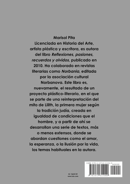 "Historias de la Dama Negra" es un libro de lírica narrativa y prosa poética, que combina textos e imágenes, y supone una continuación de "Reflexiones, pasiones, recuerdos y olvidos", anterior obra de Marisol Pita. En este caso se plantea como hilo conductor la revisión del mito de Lilith, la primera mujer, según la tradición judía, y no Eva como se ha popularizado, creada en igualdad de condiciones que el hombre. A través de diez relatos en los que se habla de esta figura, se introducen una serie de textos en los que se plantean cuestiones vitales fundamentales, como la necesidad de realización personal, o la importancia del amor en la vida. El amor es uno de los temas fundamentales del libro, entendiendo a las personas como seres que necesitan encontrarse reflejados con claridad en los ojos de otro para lograr su plenitud vital. Y es que somos libres, autónomos e independientes, pero necesitamos amar para lograr la total existencia.