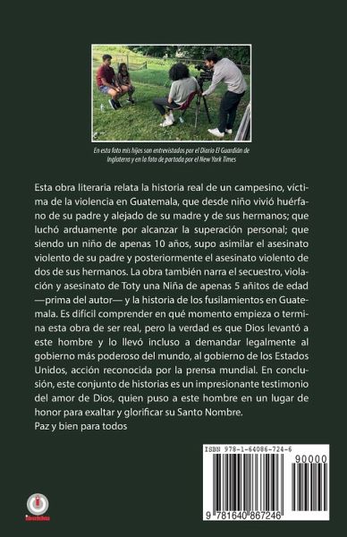 Esta obra literaria relata la historia real de un campesino, víctima de la violencia en Guatemala, que desde niño vivió huérfano de su padre y alejado de su madre y de sus hermanos; que luchó arduamente por alcanzar la superación personal; que siendo un niño de apenas 10 años, supo asimilar el asesinato violento de su padre y posteriormente el asesinato violento de dos de sus hermanos. La obra también narra el secuestro, violación y asesinato de Toty, una niña de apenas 5 añitos de edad -prima del autor- y la historia de los fusilamientos en Guatemala. Es difícil comprender en qué momento empieza o termina esta obra de ser real, pero la verdad es que Dios levantó a este hombre y lo llevó incluso a demandar legalmente al gobierno más poderoso del mundo, al gobierno de los Estados Unidos, acción reconocida por la prensa mundial. En conclusión, este conjunto de historias es un impresionante testimonio del amor de Dios, quien puso a este hombre en un lugar de honor para exaltar y glorificar su Santo Nombre. Paz y bien para todos.