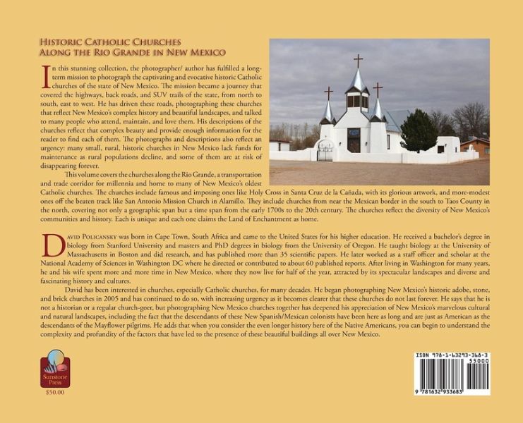 In this stunning collection, the photographer/author has fulfilled a long-term mission to photograph the captivating and evocative historic Catholic churches of the state of New Mexico. The mission became a journey that covered the highways, back roads, and SUV trails of the state, from north to south, east to west. He has driven these roads, photographing these churches that reflect New Mexico's complex history and beautiful landscapes, and talked to many people who attend, maintain, and love them. His descriptions of the churches reflect that complex beauty and provide enough information for the reader to find each of them. The photographs and descriptions also reflect an urgency: many small, rural, historic churches in New Mexico lack funds for maintenance as rural populations decline, and some of them are at risk of disappearing forever. This volume covers the churches along the Rio Grande, a transportation and trade corridor for millennia and home to many of New Mexico's oldest Catholic churches. The churches include famous and imposing ones like Holy Cross in Santa Cruz de la Cañada, with its glorious artwork, and more-modest ones off the beaten track like San Antonio Mission Church in Alamillo. They include churches from near the Mexican border in the south to Taos County in the north, covering not only a geographic span but a time span from the early 1700s to the 20th century. The churches reflect the diversity of New Mexico's communities and history. Each is unique and each one claims the Land of Enchantment as home.