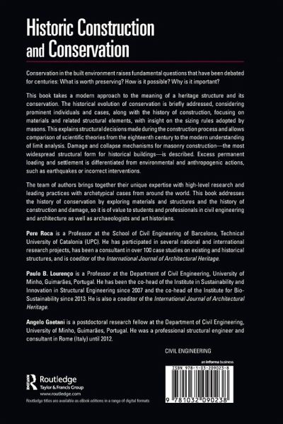 This book brings together the history of construction, materials and structural elements, with the history of conservation. It explains structural decisions made during the construction process which underlies the damage and collapse mechanisms in masonry for different forms of loading.
