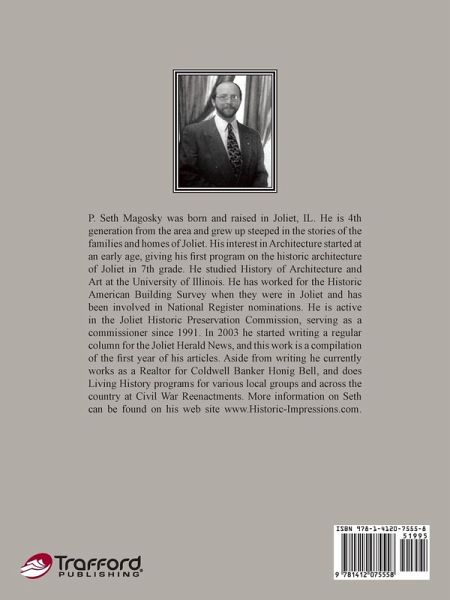 Historic Impressions is an exciting view into the Social Life and Architecture of a Lost Generation. From the mansions of railroad and merchant kings, to the simple homes of hard working stone masons and laborers, this book brings them together to tell their stories. Every old home has a story to tell, and by exploring both the architectural and social history one gets a well rounded view of the city of Joliet from early growth to manufacturing prominence. View homes both standing and demolished, and follow the lives of famous and infamous. Mayors, Merchants, Masons, Architects, Brewers and Blacksmiths are but a few of the lives that are touched on in this special book. A compellation of a weekly article written by local historian P. Seth Magosky, this book promises to become a special source for not only the local community, but also a view of social and architectural trends of the 19th and early 20th centuries. Rarely does such a book exist that brings together the architecture and lives of those who built them. This perspective gives the reader a well rounded view of people and their times. It also sets the stage for understanding how and why these homes take on the character and importance they have.