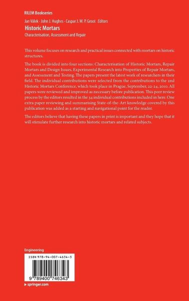 Preface.- Acknowledgements.- Historic Mortars: Characterisation, Assessment and Repair. A State of the Art Summary, by Jan Válek, John J. Hughes and Caspar J.W.P. Groot.- Chapter I : Characterisation of historic mortars: Historic documents in understanding and evaluation of historic lime mortars, by Cornelia Marinowitz, Claudia Neuwald-Burg and Matthias Pfeifer.- The earliest use of lime and gypsum mortars in Cyprus, by aria Philokyprou.- Mineralogical and microstructural analysis of mortars from Kushite archaeological sites, by Jean-Pierre Letourneux and Serge Feneuille.- Cement Microstructures and Durability in Ancient Roman Seawater Concretes, by Marie D. Jackson, Gabriele Vola, Dalibor Vsianský, John P. Oleson, Barry E. Scheetz, Christopher Brandon and Robert L. Hohlfelder.- Historic mortars with burned alum shale as an artificial pozzolan, by Sölve Johansson and Jan Erik Lindqvist.- 19th century "Novel" building materials: examples of various historic mortars under the microscope, by Johannes Weber, Karol Bayer and Farkas Pintér.- Lime mortar with natural hydraulic components: characterisation of reaction rims with FTIR imaging in ATR-mode, by Anja Diekamp, Roland Stalder, Jürgen Konzett and Peter W. Mirwald.- Characterisation of dolomitic lime mortars from the Benedictine monastery in Riesa, Saxony (Germany), by Heiner Siedel, Steffen Michalski and Bernd Ullrich.- Hydraulicity in historic lime mortars: a review, by Jan Elsen, Koenraad Van Balen and Gilles Mertens.- Characterisation of decorative Portuguese gypsum plasters from the 19th and 20th centuries: the case ofthe Bolsa Palace in Oporto, by Teresa Freire, António Santos Silva, Maria do Rosário Veiga and Jorge de Brito.- Repair mortars studied for the conservation of temple G1 in M S n, Vietnam, by Cristina Tedeschi, Luigia Binda and Paola Condoleo.- Characteristics of mortars from ancient bridges, by Dita Frankeová, Zuzana Slízková and Milos Drdácký.- Diagnosis, characterisation and restoration of the internal renders of Santíssimo Sacramento church in Lisbon, by António Santos Silva, Giovanni Borsoi, Maria do Rosário Veiga, Ana Fragata, Martha Tavares, Fátima Llera, Belany Barreiros and Telma Teixeira.- Chapter II : Repair mortars and design issues: Masonry repair options and their philosophical ramifications, by Alan M. Forster.- Conservation of historic renders and plasters: from laboratory to site, by Maria do Rosário Veiga.- Comparison between traditional, lime based, and industrial, dry mortars, by Albert Jornet, Cristina Mosca, Giovanni Cavallo and Guido Corredig.- Repair mortars for the sandstones of the cathedral of Berne, by Christine Bläuer, Hermann Häberli, Annette Löffel and Bénédicte Rousset.- Compatibility of repair mortars with 19th century natural cement cast stone from the French Rhône-Alpes region, by Myriam Bouichou, Elisabeth Marie-Victoire, Emmanuel Cailleux and Denis Sommain.-