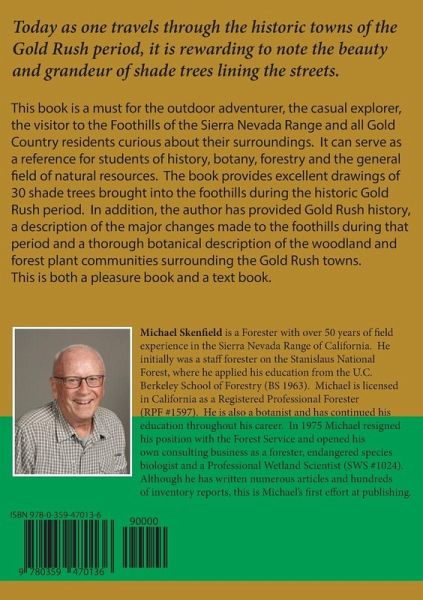 This book is a must for the outdoor adventurer, the casual explorer, the visitor to the Foothills of the Sierra Nevada Range and all Gold Country residents curious about their surroundings. It can serve as a reference for students of history, botany, forestry and the general field of natural resources. The book provides excellent drawings of 30 shade trees brought into the foothills during the historic Gold Rush period. In addition, the author has provided Gold Rush history, a description of the major changes made to the foothills during that period and a thorough botanical description of the woodland and forest plant communities surrounding the Gold Rush towns. This is both a pleasure book and a text book.