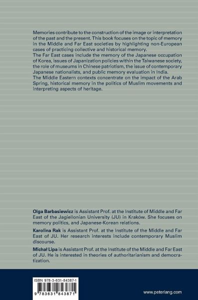 Memories contribute to the construction of the image or interpretation of the past and the present. This book focuses on the topic of memory in the Middle and Far East societies by highlighting non-European cases of practicing collective and historical memory.