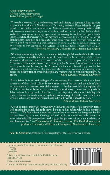 Historical Archaeology in Africa is an inquiry into the questions that count, proposing different ways of thinking about historical archaeology. Peter Schmidt challenges readers to expand their horizons beyond the ethnocentrism of archaeology, as it is defined and practiced in North America. Confronting topics of oral traditions, our orientation to archaeology, and the misrepresentation of various cultures, Schmidt calls for a new pathway to an enriched, more nuanced, and more inclusive historical archaeology.