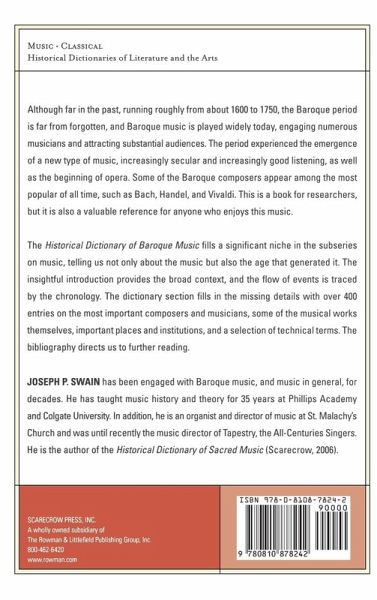 The Historical Dictionary of Baroque Music covers the history of this period through a chronology, an introductory essay, and an extensive bibliography. The dictionary section has over 400 cross-referenced entries on the most important traditions, famous pieces, persons, places, technical terms, and institutions of Baroque music. This book is a vital reference tool for students and teachers of music history, students and teachers of the Western tradition, and above all for lovers of Baroque music.