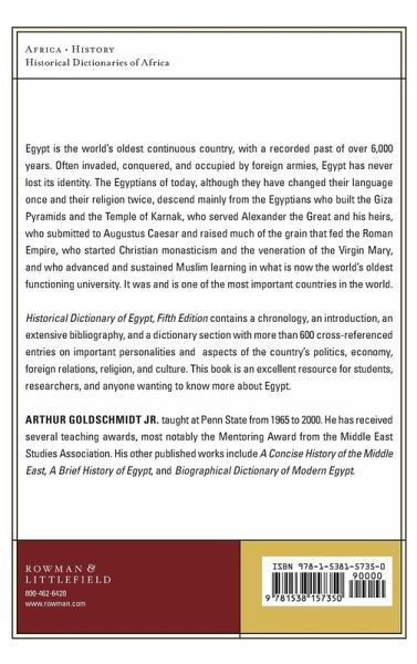 Historical Dictionary of Egypt, Fifth Edition contains a chronology, an introduction, and an extensive bibliography. The dictionary section has more than 600 cross-referenced entries on important personalities as well as aspects of the country’s politics, economy, foreign relations, religion, and culture.