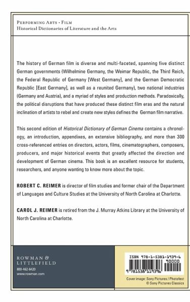 The History of German film is diverse and multi-faceted. This volume can only suggest the richness of a film tradition that includes five distinct German governments [Wilhelmine Germany, the Weimar Republic, the Third Reich, the Federal Republic of Germany (West Germany), and the German Democratic Republic (East Germany), s well as a reunited Germany], two national industries (Germany and Austria), and a myriad of styles and production methods. Paradoxically, the political disruptions that have produced these distinct film eras, as well as and the natural inclination of artists to rebel and create new styles, allow for construction of a narrative of German film. Disjuncture generates distinct points of separation, and yet also highlights continuities between the ruptures. This second edition of Historical Dictionary of German Cinema contains a chronology, an introduction, appendixes and an extensive bibliography. The dictionary section has over 200 cross-referenced entries on directors, actors, films, cinematographers, composers, producers, and major historical events that greatly affected the direction and development of German cinema. This book is an excellent resource for students, researchers, and anyone wanting to know more about German cinema.